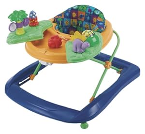 *Update 12/14/10* My son is 11 months now, and he still enjoys his walker. However, there is no seatbelt in the walker, and he has figured out that if he grabs onto things, then he can pull himself up to stand in (or on) the walker. This has become a big safety issue, so I wanted to note the lack of a seatbelt for other parents with climbers (or future climbers).